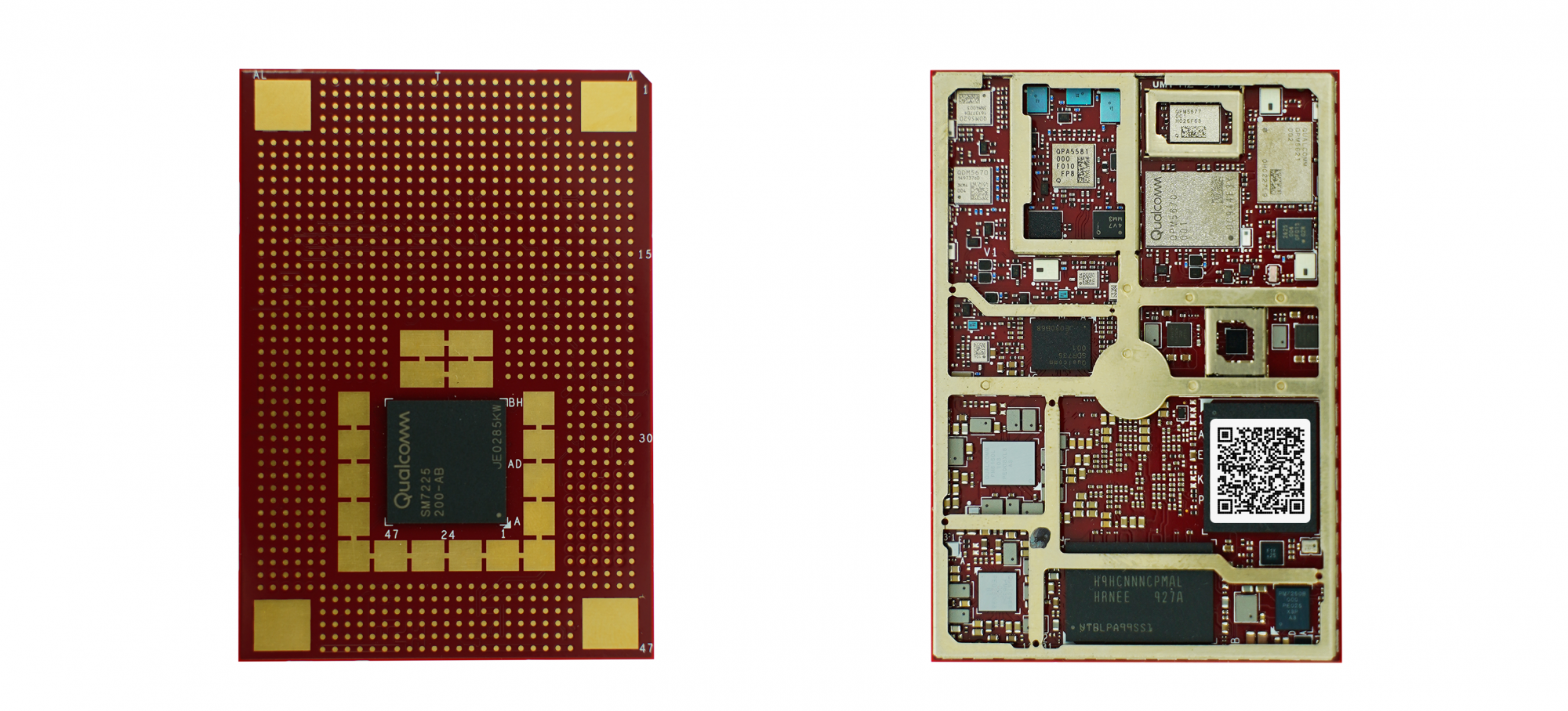 SOM7225 is a highly integrated System On Module (SOM) which integrates a system features with Qualcomm SM7225 processor, memory, UFS, PMIC and interface for audio codec and wireless connectivity of WiFi 802.11 a/b/g/n/ac/ax, 2x2 802.11ac MU-MIMO with BT 5.1 long range reserved. SOM7225 is a multi-band wireless WAN module with Sub-6, LTE-FDD/TDD, WCDMA, GSM, GNSS features and interface support mmWave feature reserved.